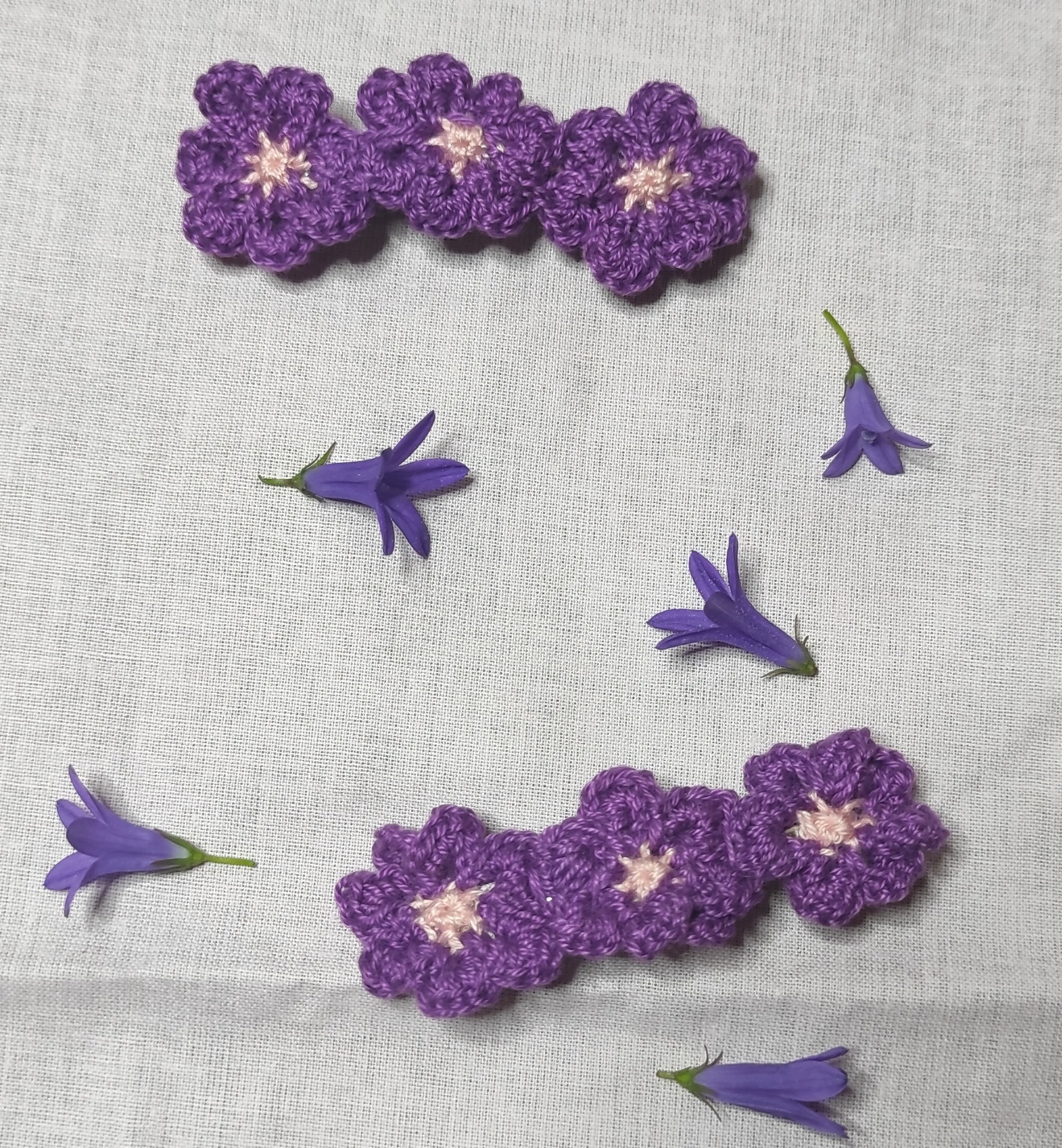 Francouzská spona ozdobena ručně háčkovanými květy. Cena je za jeden kus